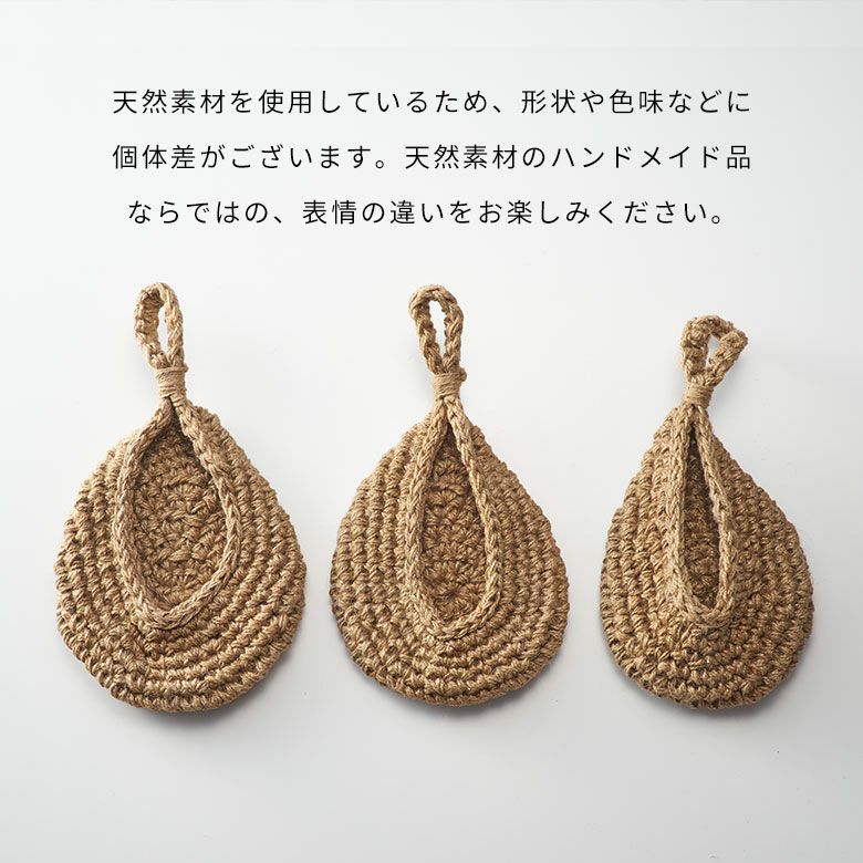 インドの職人さんによるハンドメイドで、1つ1つ丁寧に編まれています。