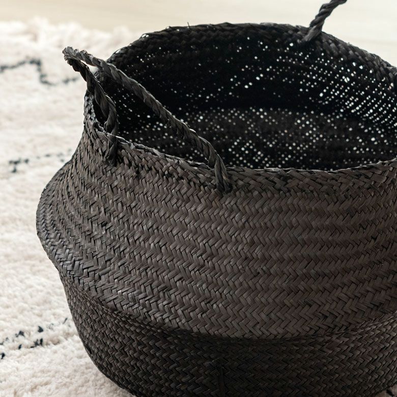 プランターカバー モダン リビング キッチン ダイニング バスケット かご Mサイズ 2way シーグラス ラウンド ブラック 黒 折りたたみ W 35cm D 35cm H 32cm [51293]【 ハンドル付き かご 籠 収納バスケット おもちゃ入れ 荷物入れ 玄関 スリッパ 収納 ランドリーバスケット おしゃれ リゾート ナチュラル バリ アジアン 雑貨 】