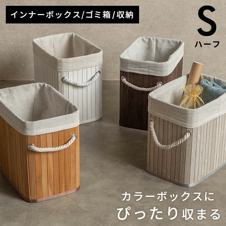 カラーボックスに2つ並べてぴったり収まるサイズ感で、小物衣類やフェイスタオルの仕分け収納に最適。カラーボックスやオープンラックからスッと引き出せるロープ取っ手付きで、出し入れもスムーズです。散らかりがちな小物整理はもちろん、ソファ横やデスク下に置く10Lサイズの小さなゴミ箱としても活躍します。