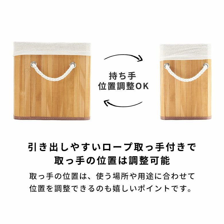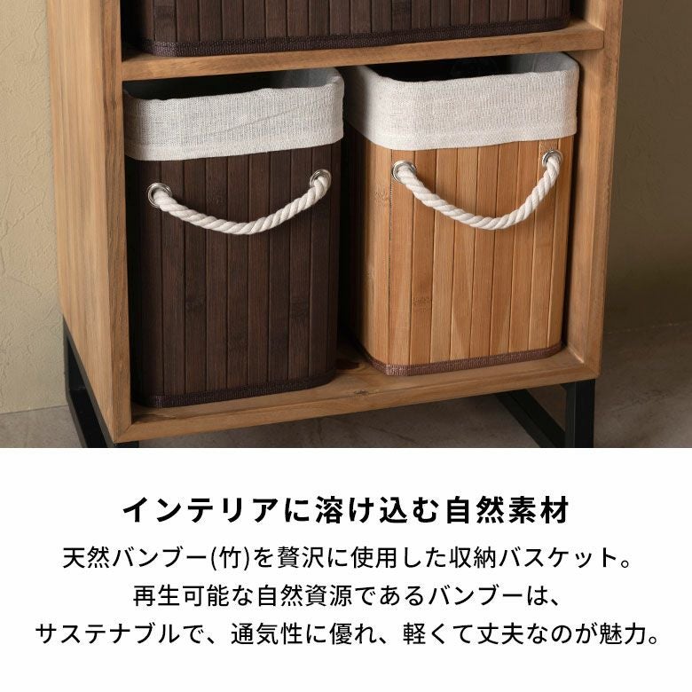 天然バンブー(竹)を贅沢に使用した収納バスケット。