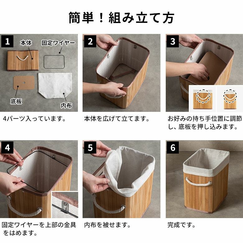 ・バンブー素材ならではの温かみのあるナチュラルデザインでお部屋に自然と馴染み、生活感をおしゃれに隠せます