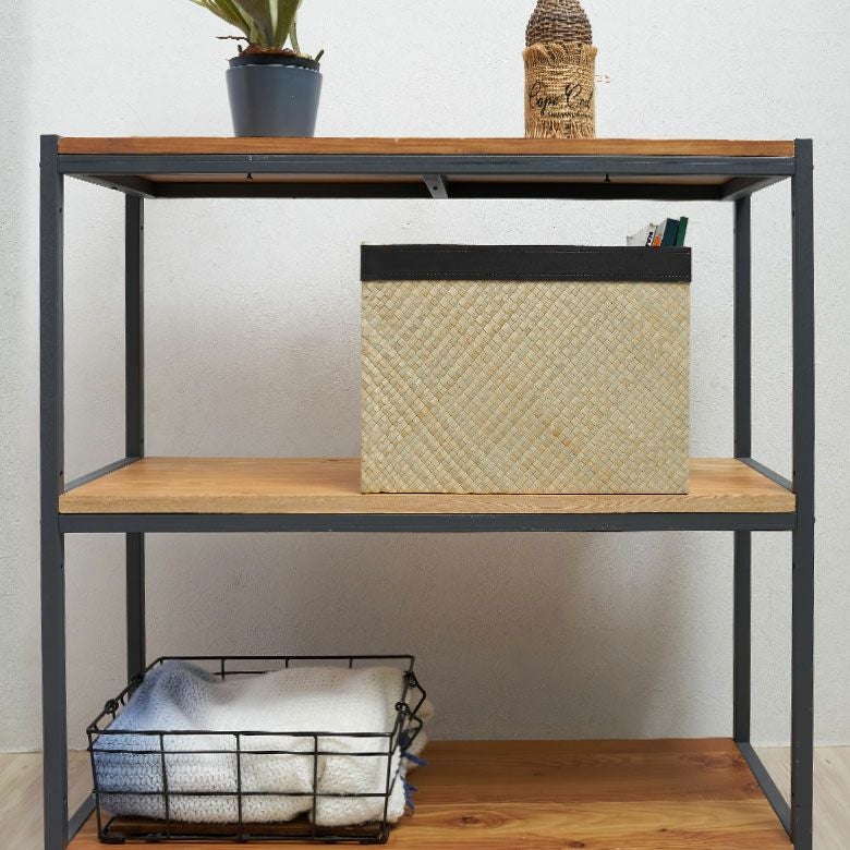 フチ周りのレザーデザインが洗練された雰囲気で、シェルフやラックなどの