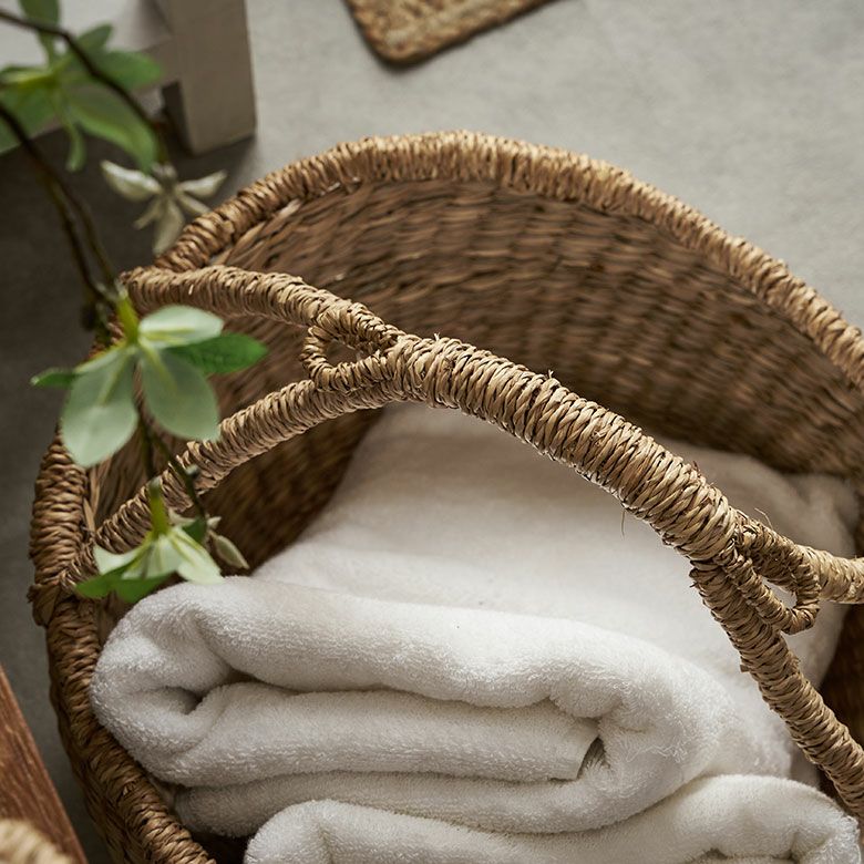 ゆっくり底を押し戻してください。置いた状態で、力を入れすぎずにやさしく押すのがポイントです。 ※持ち手を引っ張るとちぎれる恐れがあります。形を整える際はバスケットのフチをお持ちください。 |