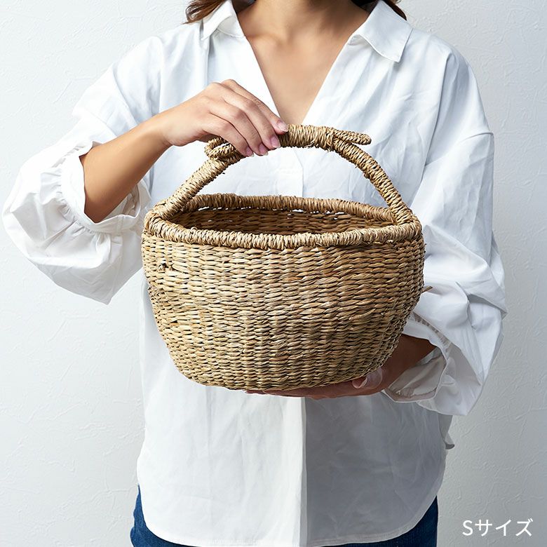 バスケットのどの部分も、ハンドメイドにより美しく編まれています。