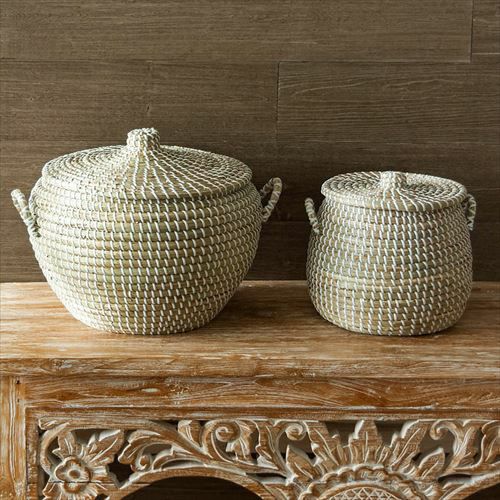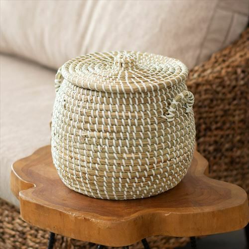 ひとつひとつ手作業で作られた、シーグラス製バスケット。