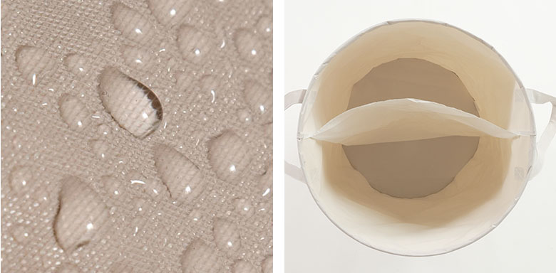 防水加工 内側は防水加工(PEコーティング)で脱水後の衣類やタオルも安心。 |
