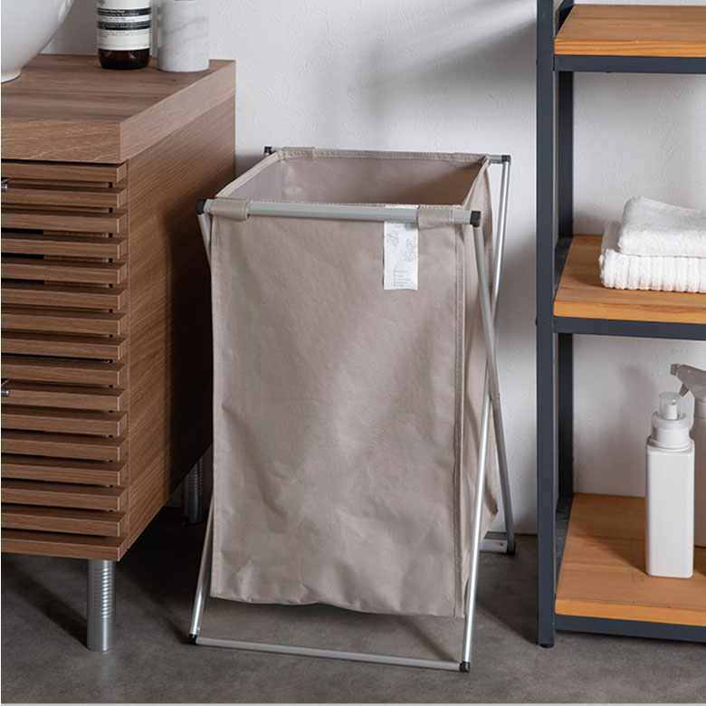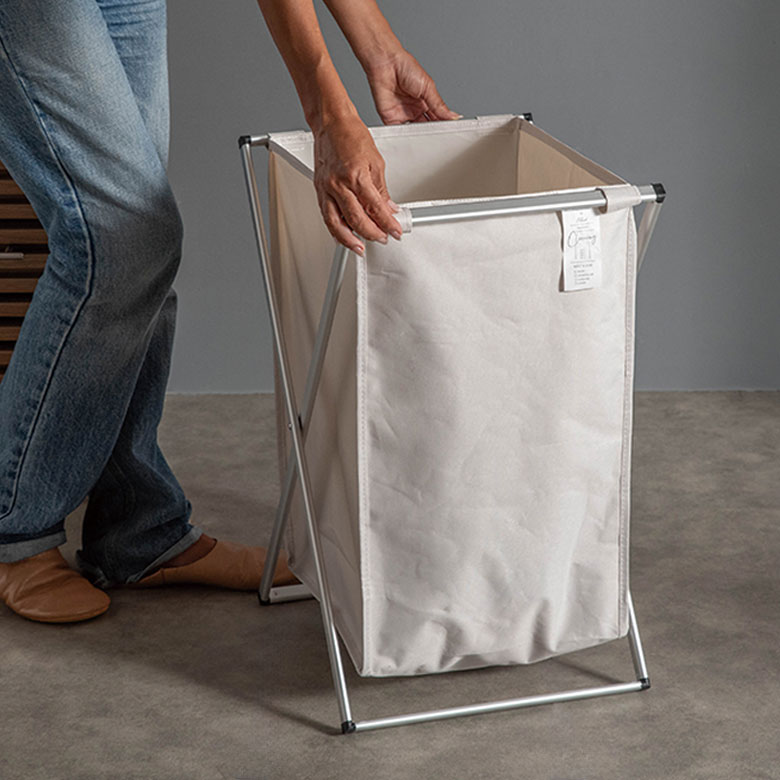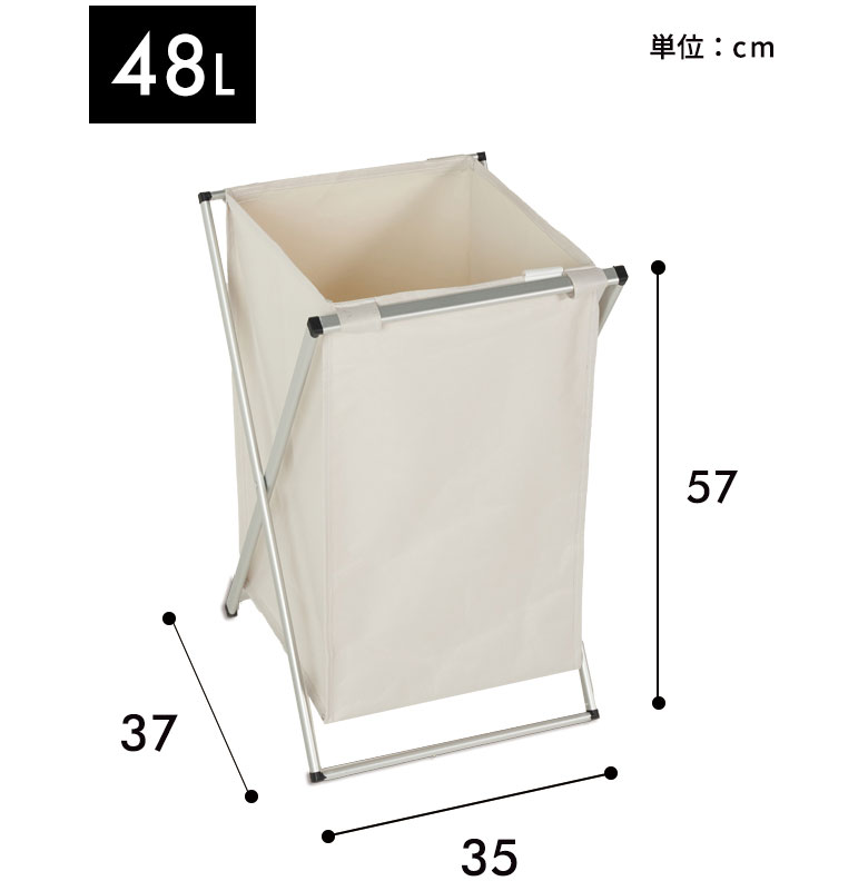 ランドリーバスケット 48Lアルミフレームでしっかり自立する折りたたみ式 |