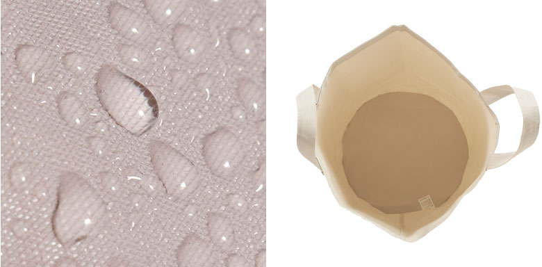 ・内側は防水加工(PEコーティング)で、脱水後の衣類やタオルも安心