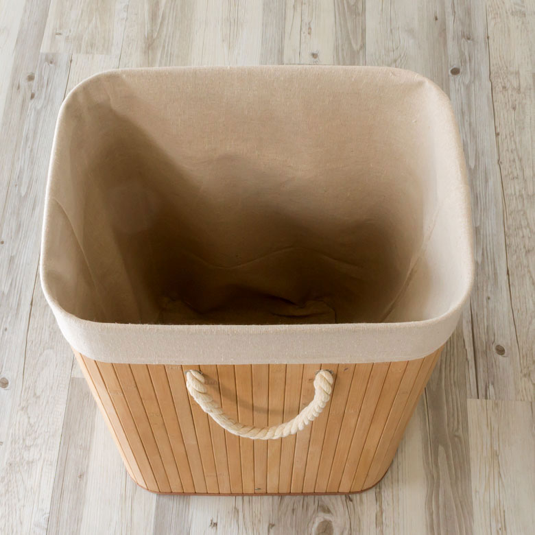 たっぷりと収納できる大容量のバンブー製・スクエア型ランドリーバスケット。