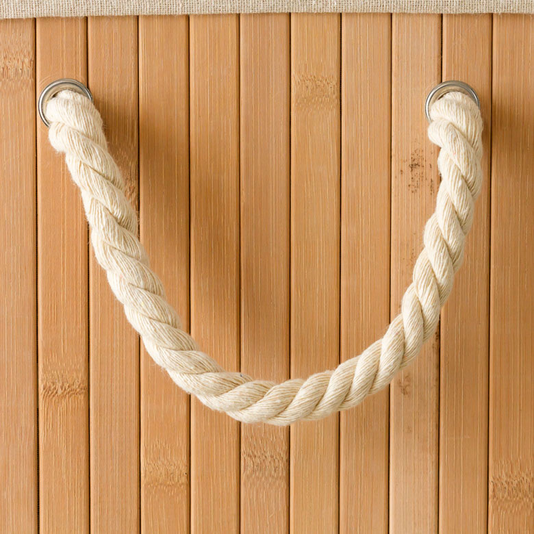 サイズ:約幅40cm × 奥行30cm × 高さ60cm 容量:65リットル 材質:天然バンブー、ロープ カラー:ナチュラル、ブラウン、ホワイト、グレー