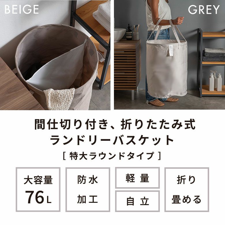 ランドリーバスケット 76L 仕切り付き 特大ラウンドタイプ |