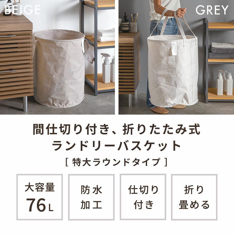 ランドリーバスケット 76L 仕切り付き特大ラウンドタイプ |
