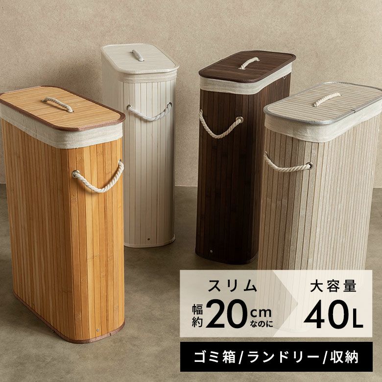 スペースを有効活用できる幅約20cmのスリムタイプながら、40Lの大容量の収納力が魅力。ふた付きなので、見せたくない物を隠してスッキリ収納可能。ランドリーバスケットやリビング収納、分別用ダストワゴン、お子様のおもちゃ収納など、あらゆるシーンで活躍します。