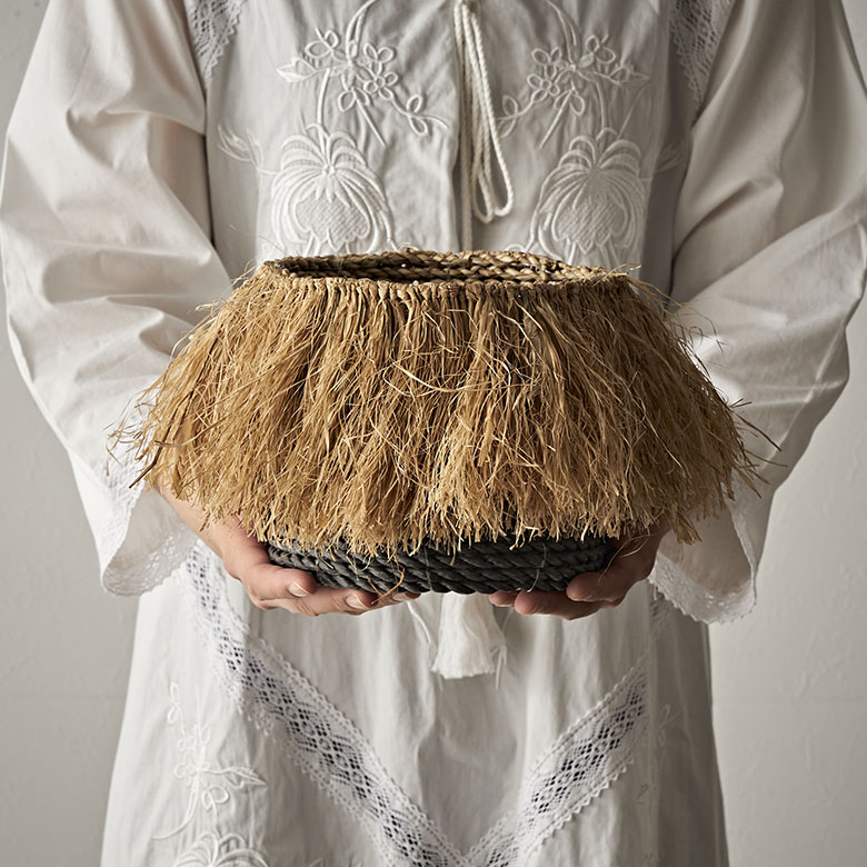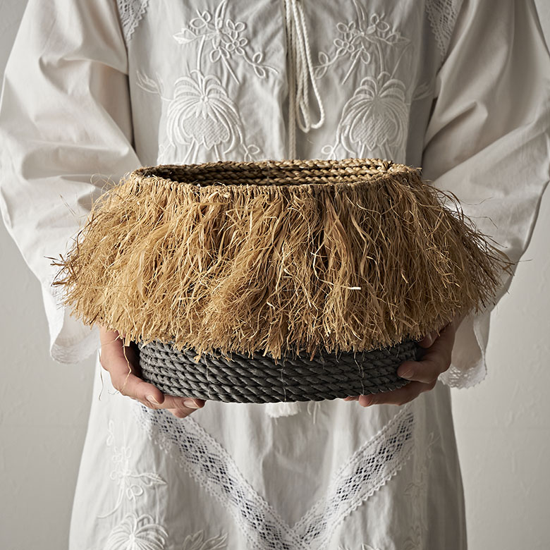 ラフィアのフリンジバスケット