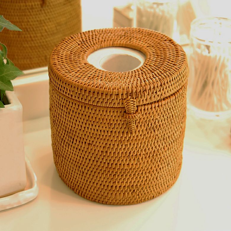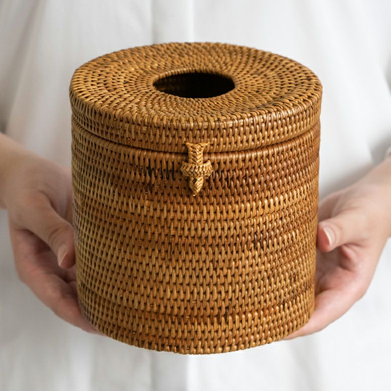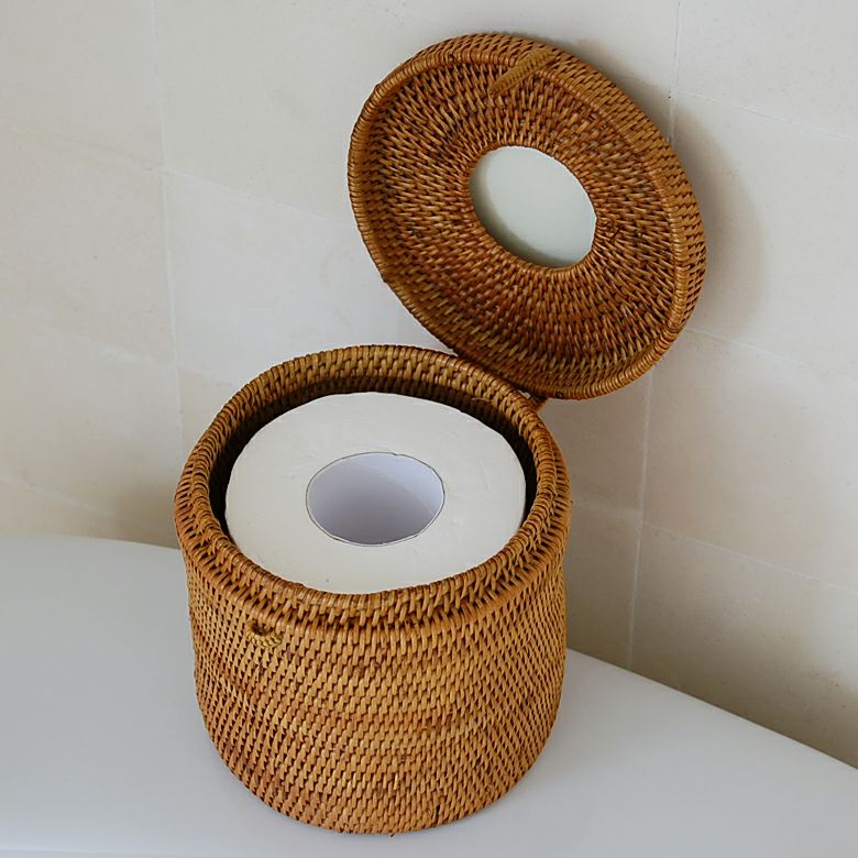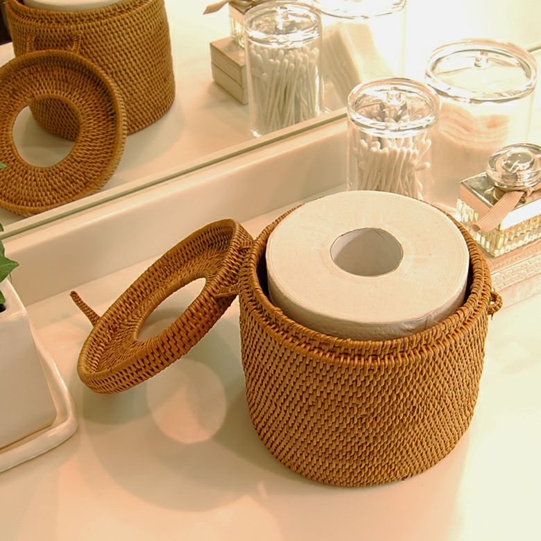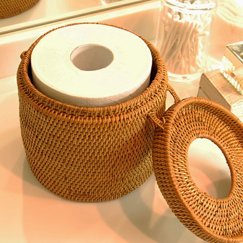 ラタンで編まれたトイレットペーパーケース |