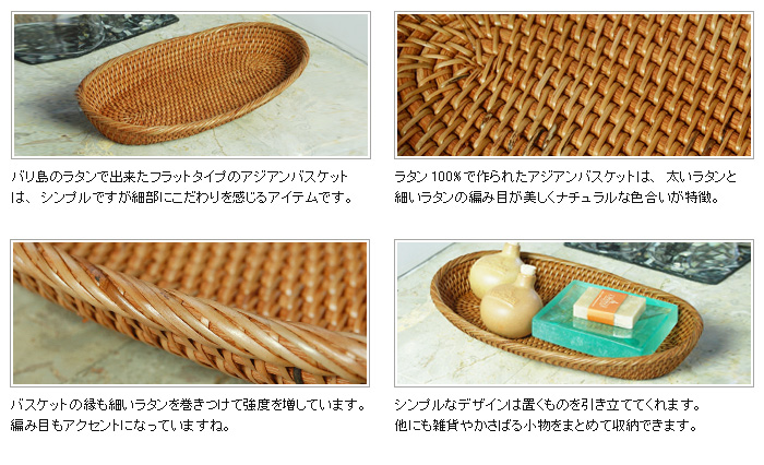 フラットタイプのトレイ型アジアンバスケット。ナチュラルな