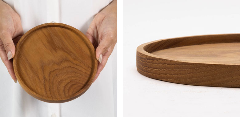 チーク無垢材 ラウンドトレイ