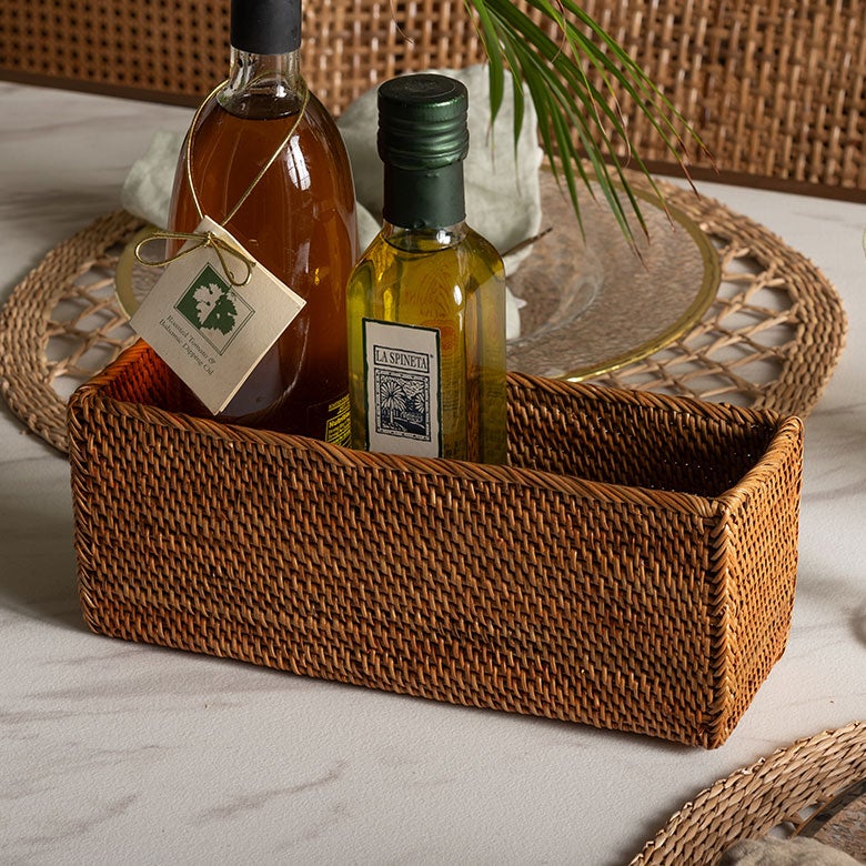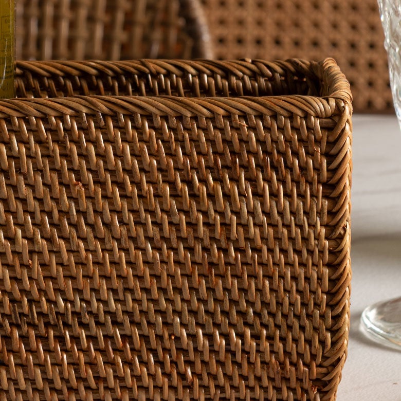 客室のアメニティやボトル類の収納として使えば、天然アタ素材の美しい編み模様がリゾート感のある洗練された空間を引き立てます。