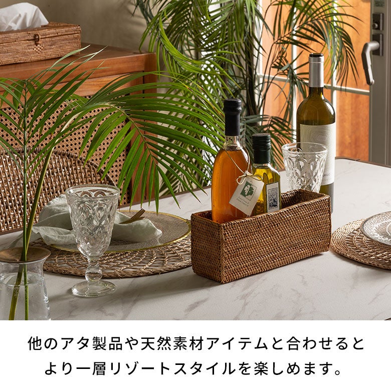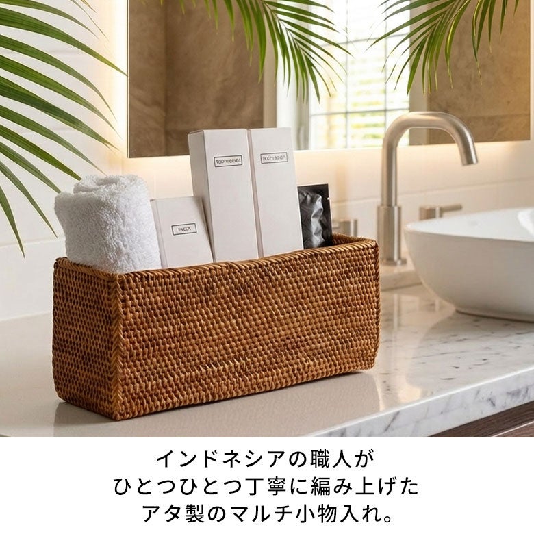 丁寧に編み上げたアタのマルチ小物入れは、バリや南国リゾートを思わせるアジアンインテリアと相性抜群で、リラックス感あふれるホテルライクな空間を演出します。