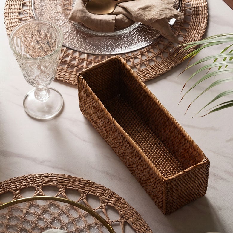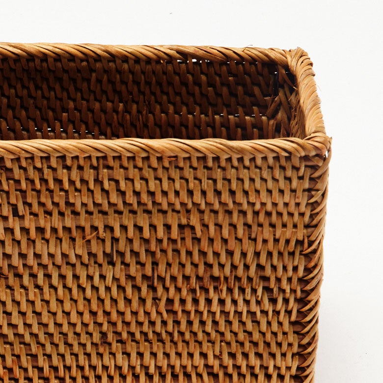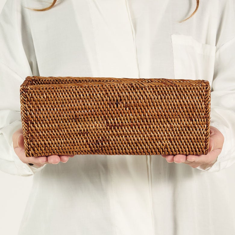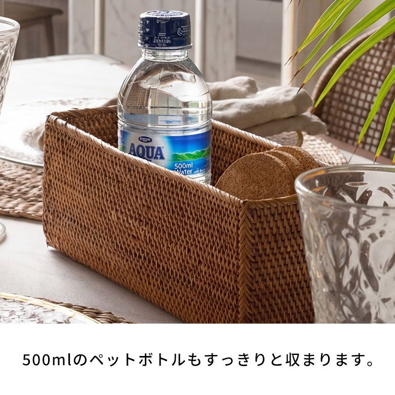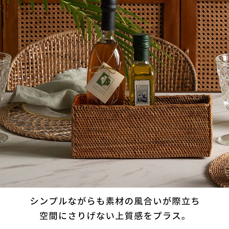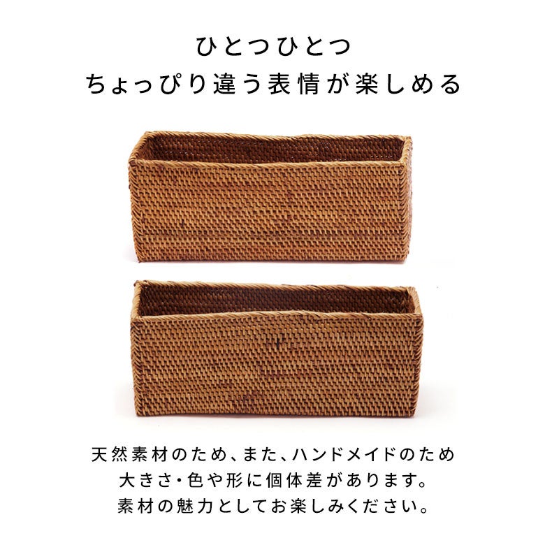 天然素材アタならではのやさしい風合いが、木製家具やリネン素材と調和し、ナチュラルインテリアの中でも生活感を抑えながら美しく収納できる小物ケースとして活躍します。