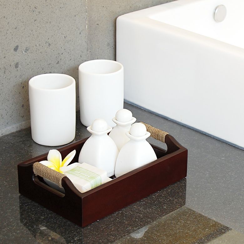 バスルームや洗面所の小物をスッキリ収納できるトレイ。