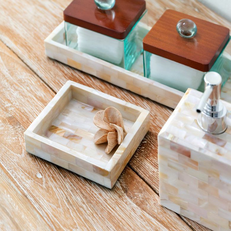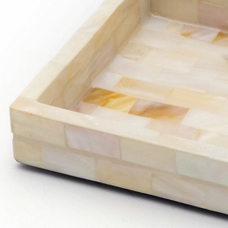 パールシェルをモザイクのように貼り合わせたトレー。