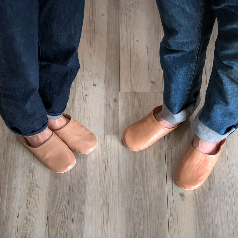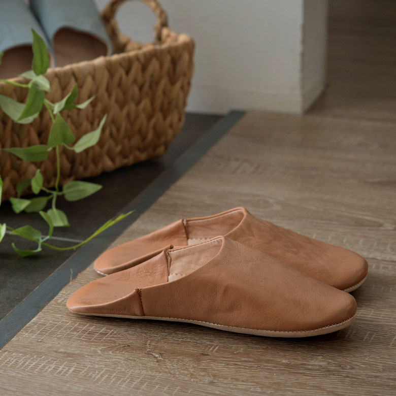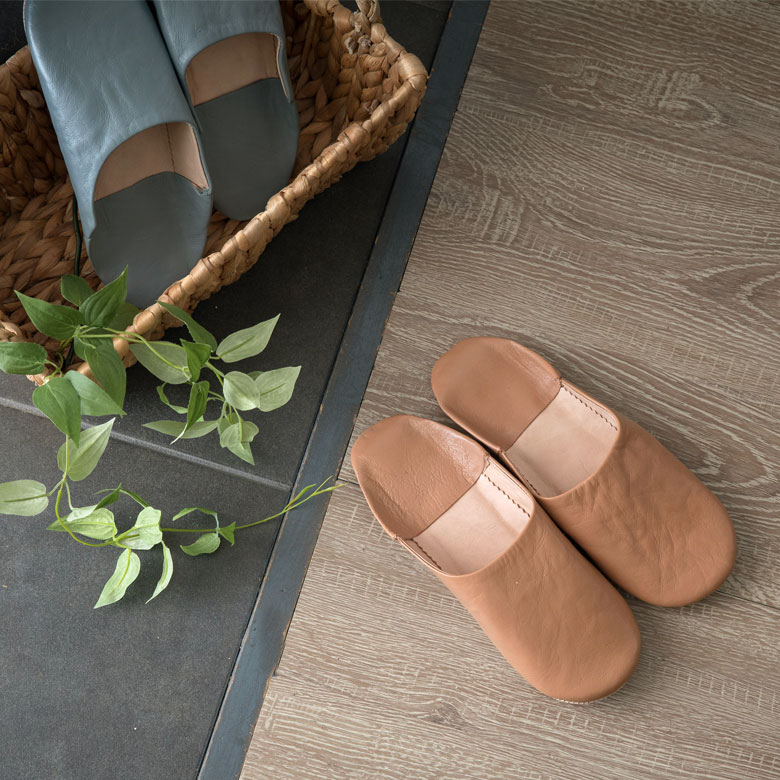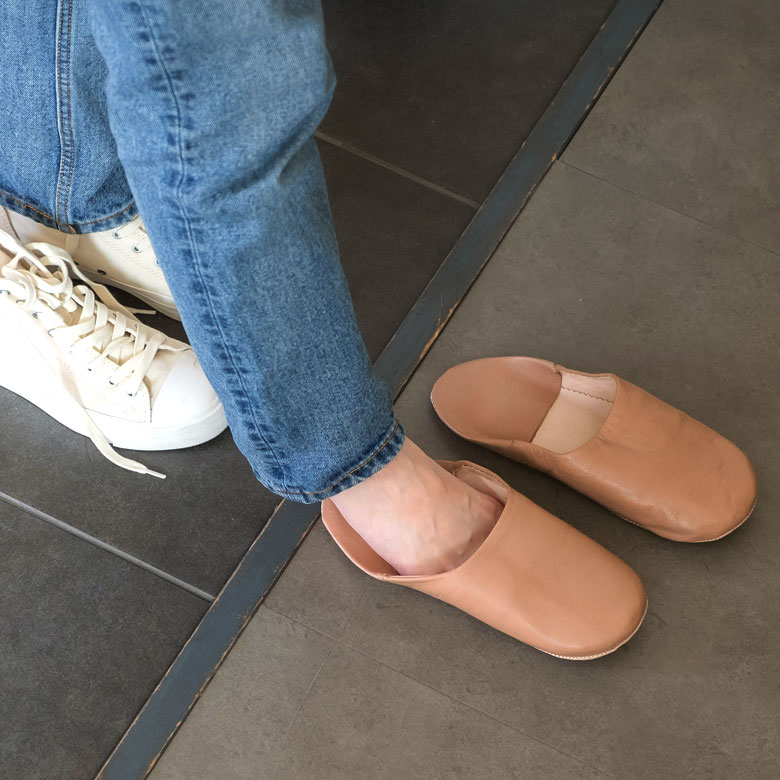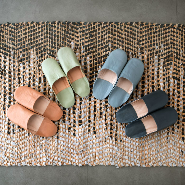 柔らかい羊革で作られたバブーシュは、冬は暖かく、夏は涼しく履き心地は格別。