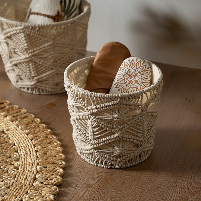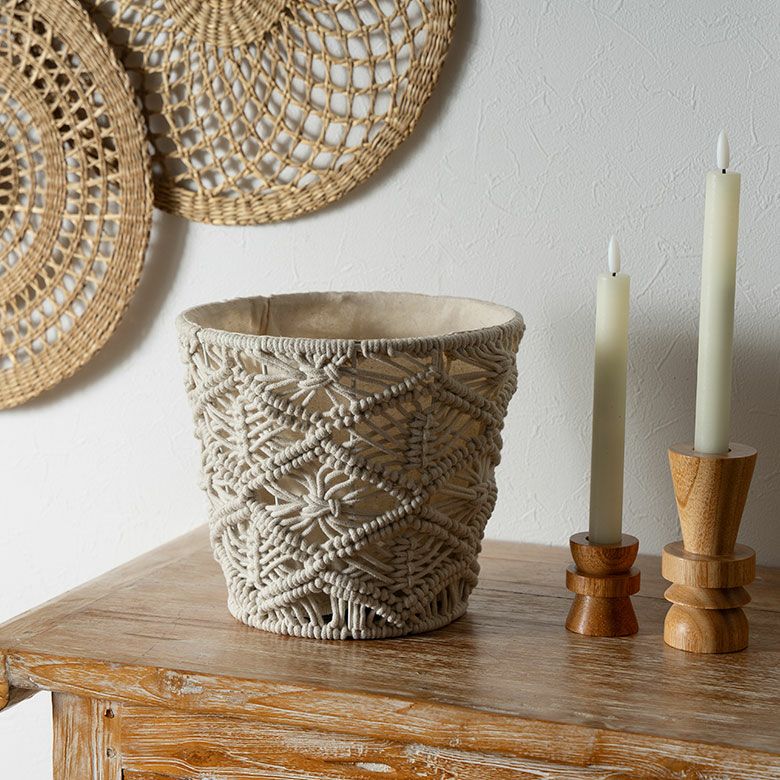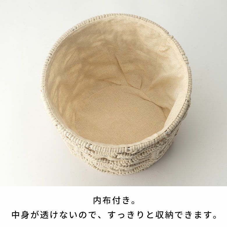 インナーケース 収納BOX リビング収納 ラック収納 インテリア収納 オープンシェルフ カラーボックス キッチンストッカー 小物入れ マガジンラック スリッパ収納 棚収納 おもちゃ入れ バスケット 収納バスケット 丸型 ラウンド Mサイズ マクラメ アイアン 約 W 25cm D 25cm H 21cm 6.6L アイボリー カゴバスケット 収納 収納ボックス 収納かご 収納カゴ 籠 かご カゴ かごバスケット おしゃれ 北欧 リゾート 雑貨 インテリア BOHO サーフ アジアン [34616]