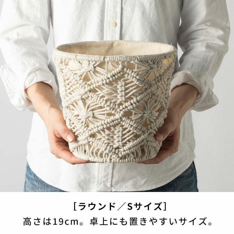 インナーケース 収納BOX リビング収納 ラック収納 インテリア収納 サーフ オープンシェルフ カラーボックス キッチンストッカー 小物入れ マガジンラック スリッパ収納 棚収納 おもちゃ バスケット 収納バスケット 丸型 ラウンド Sサイズ マクラメ アイアン 約 W 22.5cm D 22.5cm H 19cm 3.4L アイボリー カゴバスケット 収納 収納ボックス 収納かご 収納カゴ 籠 かご カゴ かごバスケット おしゃれ 北欧 リゾート 雑貨 インテリア BOHO アジアン [34615]