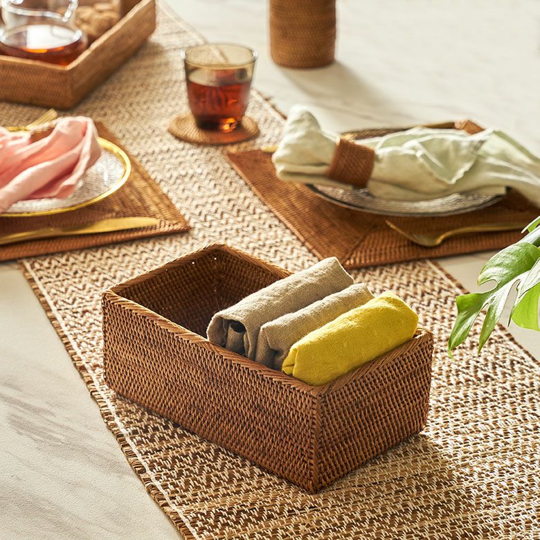 リビング ランドリーバスケット 万能バスケット ミニテーブル 机 サイドテーブル ラタン コーヒーテーブル ナイトテーブル W 41cm D 41cm H 41cm [13925-brw]【 2way 蓋付き 収納 籐 ウッド ソファーサイド ソファサイド ラタン家具 テーブル 北欧 リゾート ナチュラル コースタル おしゃれ スタイリッシュ アジアン家具 エスニック 】