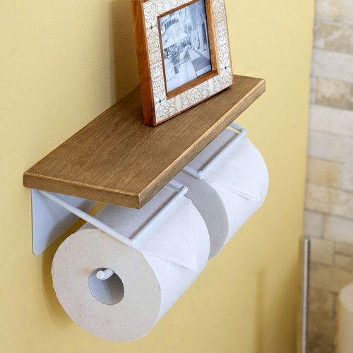 棚 トイレットペーパー ツイン 海外仕様 対応 太巻き トイレットペーパーホルダー ダブル 2連 ウッド 木英 アイアン 金属 棚付き 約 W 31cm D 12cm H10cm トイレ ペーパーホルダー [84093]【 ベージュ ブラウン アンティーク ヴィンテージ ナチュラル 北欧 おしゃれ 収納 DIY 賃貸可 店舗用 リゾート アジアン雑貨 ホテル 】