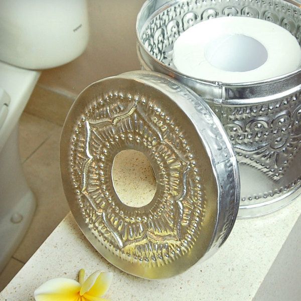 小さなごみ箱としても使えるバリ島のトイレットペーパーケース アルミ製 アジアン トイレットペーパーケース[10204]【トイレットペーパー おしゃれ ストッカー 収納ボックス ホルダー ケース カバー ティッシュケース バリ雑貨 アジアン雑貨 エスニック トイレ リゾート かわいい 卓上 バリ島 ロールペーパーホルダー ティッシュカバー】