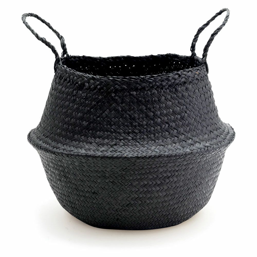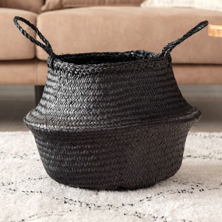 プランターカバー モダン リビング キッチン ダイニング バスケット かご Lサイズ 2way シーグラス ラウンド ブラック 黒 折りたたみ W 40cm D 40cm H 35cm [51294]【 ハンドル付き かご 籠 収納バスケット おもちゃ入れ 荷物入れ 玄関 スリッパ 収納 ランドリーバスケット おしゃれ リゾート ナチュラル バリ アジアン 雑貨 】