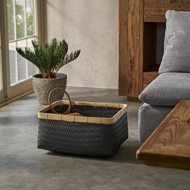 リビング キッチン 洗面所 衣類 洗濯物 おもちゃ バッグ 入れ 店舗 レストラン カフェ シンプルモダン モダン リゾートインテリア カゴ 籠 バス トイレ 異素材 バイカラー ハンドメイド バスケット Sサイズ かご 9.7L バンブー 竹 プラスチック 約 W 30cm D 20cm H 18cm ランドリーバスケット 耐水性 レクタングル かごバスケット 収納 収納バスケット 洗濯物入れ 荷物入れ かばん入れ 小物入れ おしゃれ 北欧 雑貨 インテリア リゾート アジアン [s-14065]