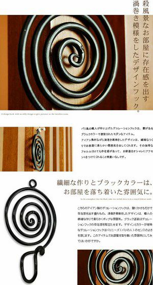 渦巻き模様のデザインをしたフックは、特徴的で他にはなく、とても存在感があるアイテムだといえるでしょう。