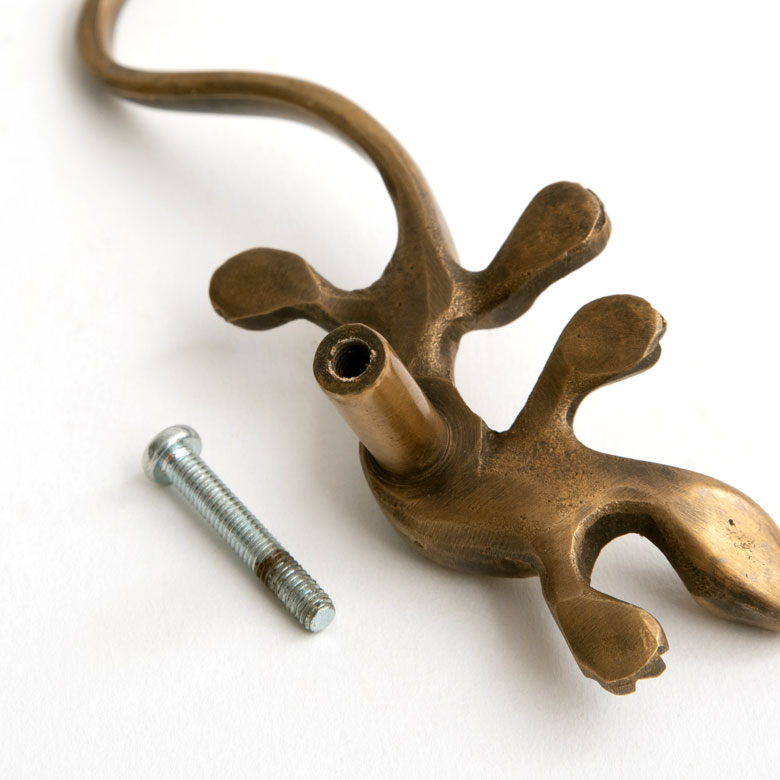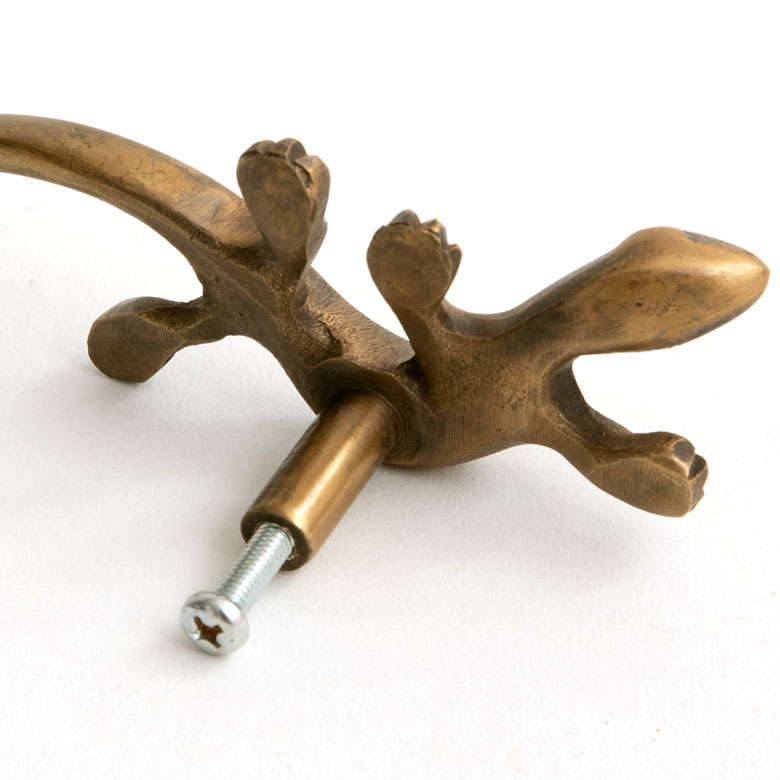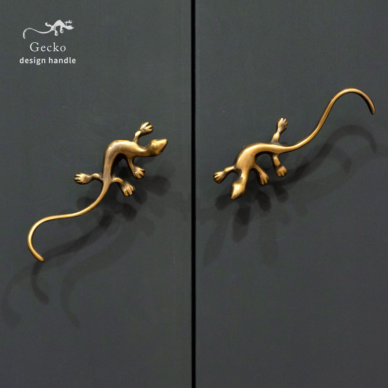 ヤモリデザインの真鍮ハンドル