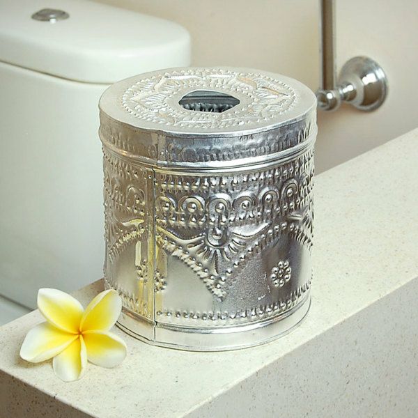 アジアンな模様が全面に施された、アルミのトイレットペーパーケース。