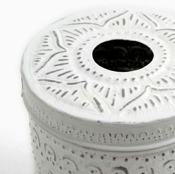 アジアンな模様が全面に施された、アルミのトイレットペーパーケース。