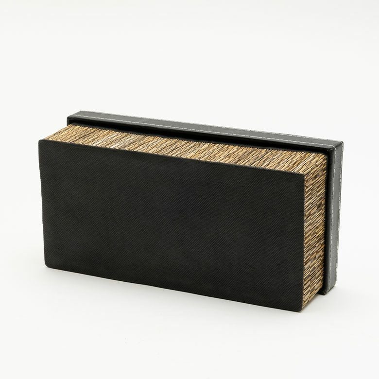 蓋の縁にあしらわれたフェイクレザーが特徴です。
