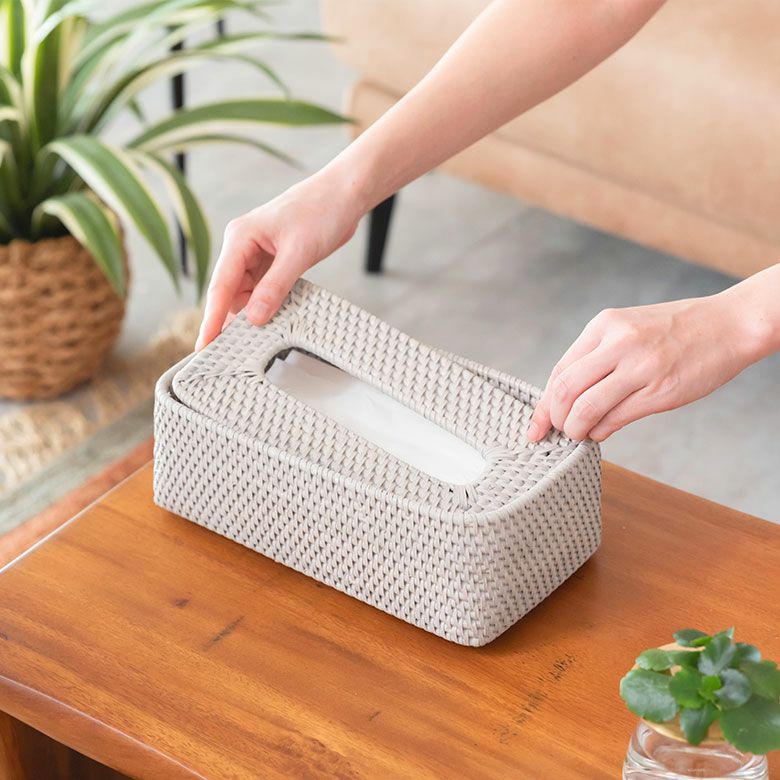 ※背の高いタイプのボックスティッシュの場合は、中身だけ取り出してセットして下さい。
