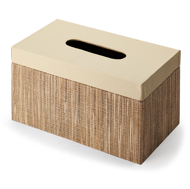 [ウォーターヒヤシンス素材×フェイクレザーのティッシュケース]