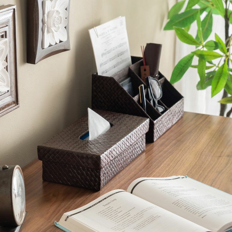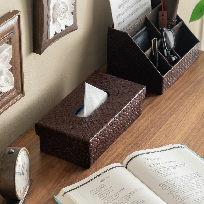 モダンなテイストが特徴的なパンダン製のティッシュケース。