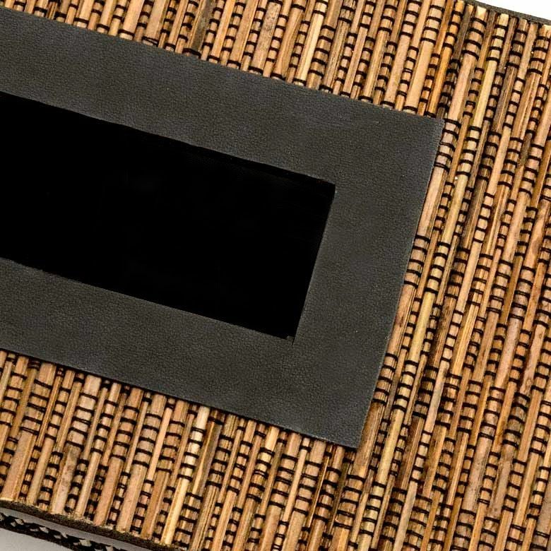 黒い糸で編 んで、すだれのように繋げたもので作られたもの。