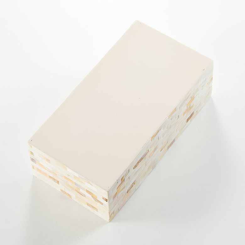 つやつやとした輝きが美しい、シェル素材のティッシュボックスカバー。