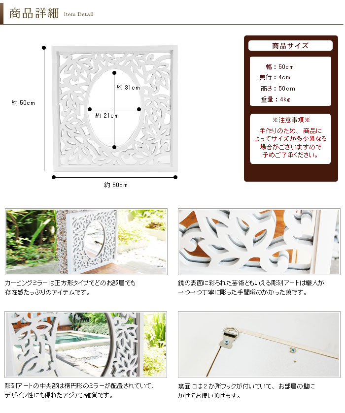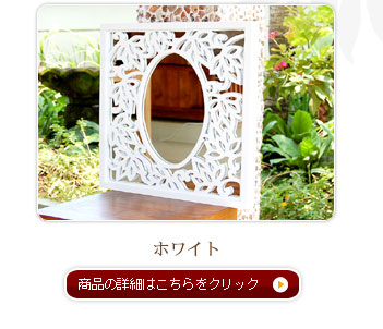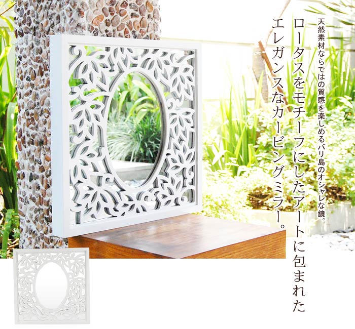 ホワイトに塗装されたカービングミラーはフレームに収まり