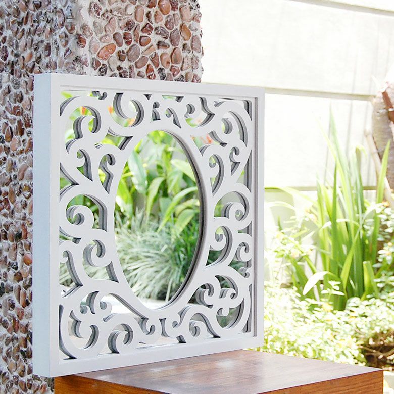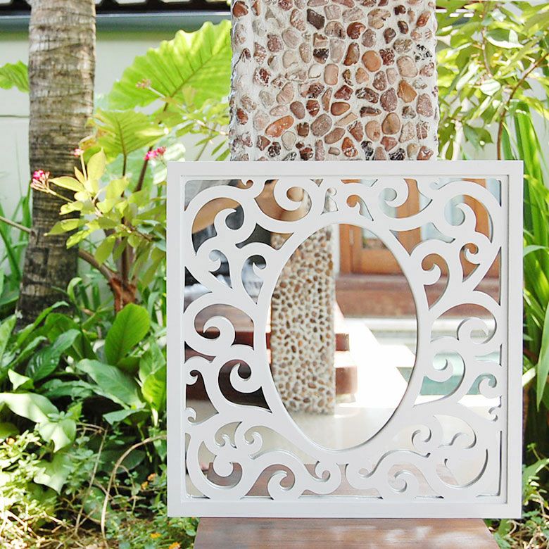 バリ島のホテルやヴィラなどでも使われている、カービングミラー。