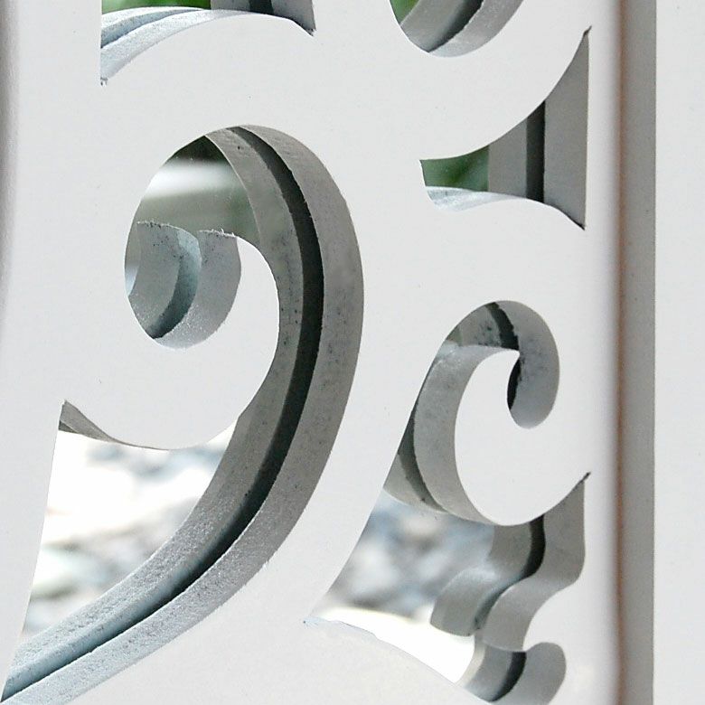 フレームの彫刻が存在感たっぷりなカービングミラー。