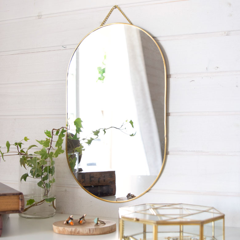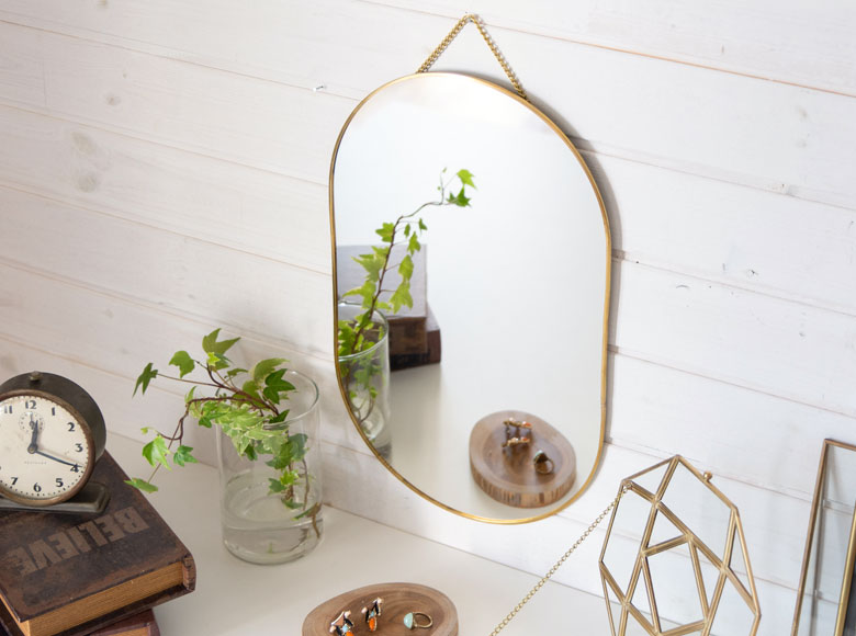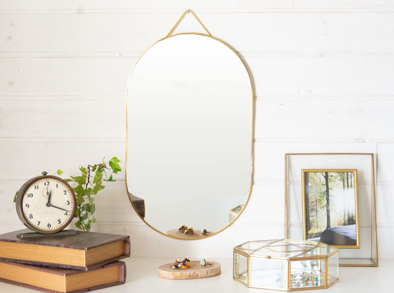 真鍮フレームの壁掛けミラー