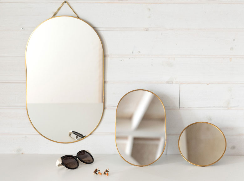 シンプルで飽きのこない定番デザインのミラーを、