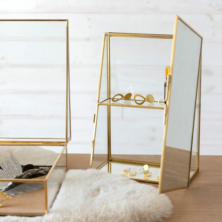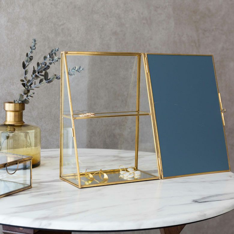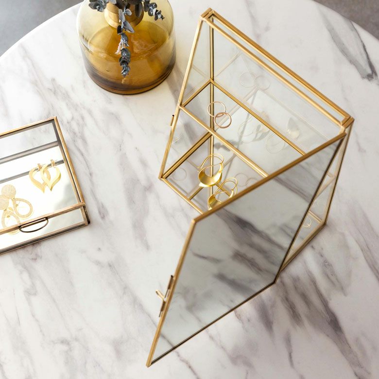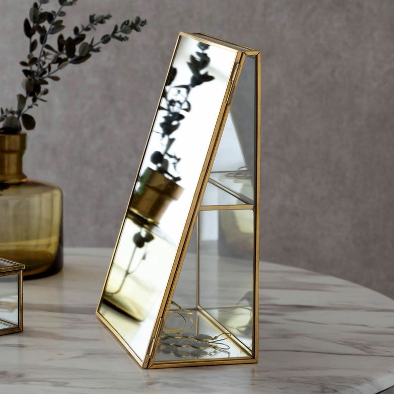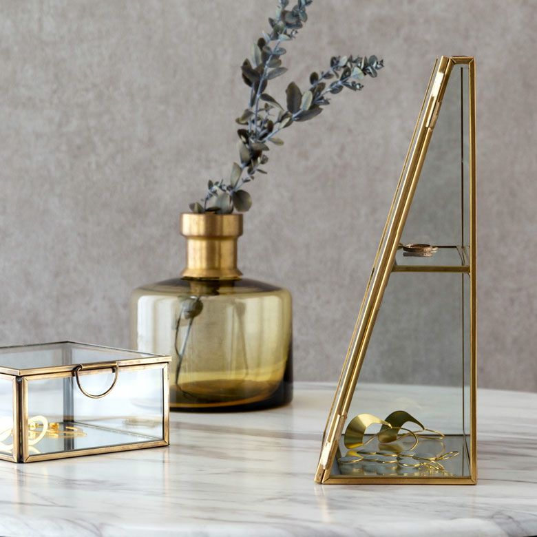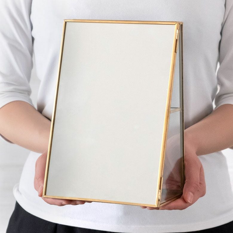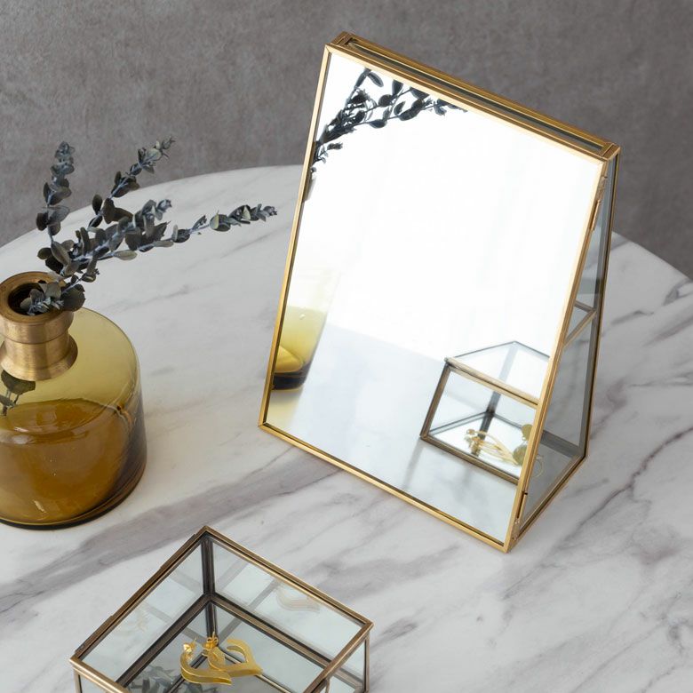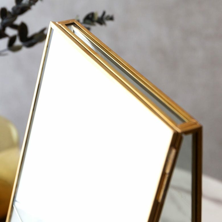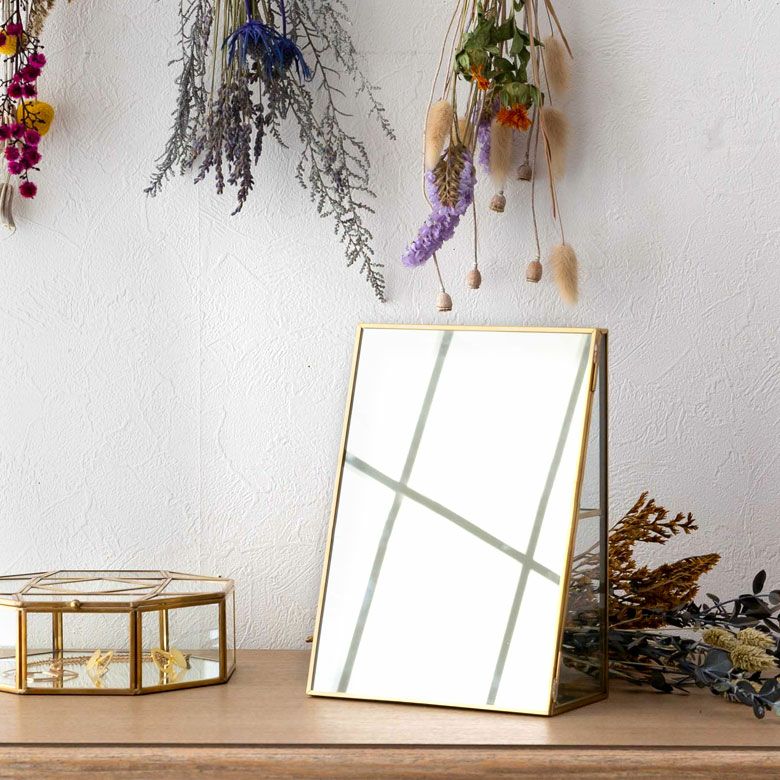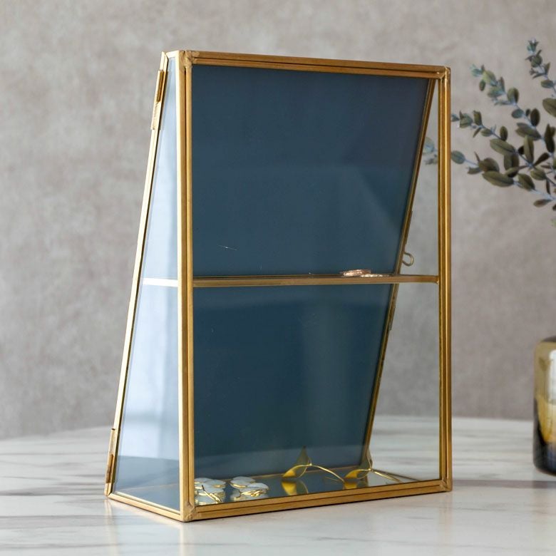 落ち着いたゴールドの真鍮フレームとガラスでできた、